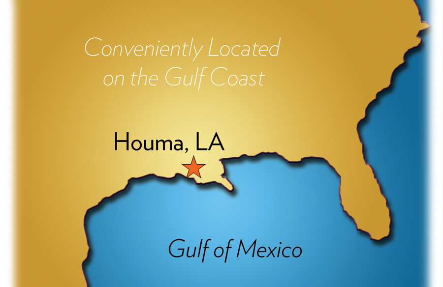 Our business office is located in the industrial district of Houma near Prospect Street at 216 Industrial Avenue B. The company occupies 4.5 acres of land with 750 feet of direct access to the Intracoastal Canal along with a 7,500 square foot fabrication shop housing an overhead crane.
